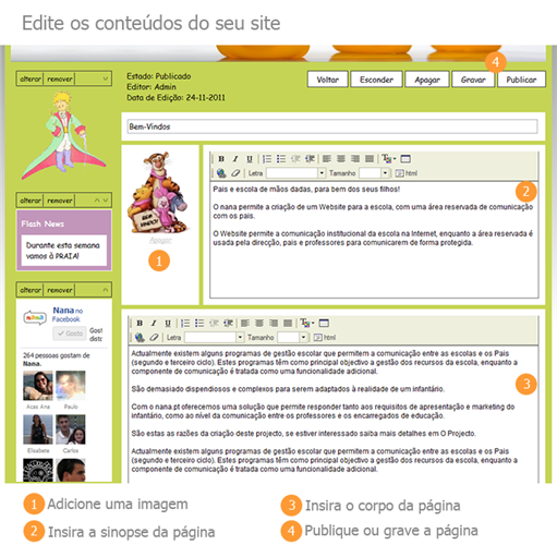 Nesta página estão representadas as principais funcionalidades do Nana. Depois pode experimentar uma versão completamente funcional, sem qualquer tipo de registo.
